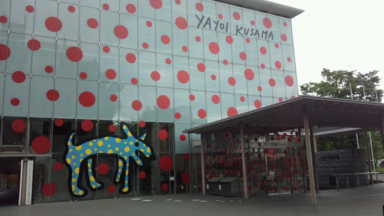 松本市美術館、草間彌生の作品が今の展示だそうで建物の外観もこんな感じに