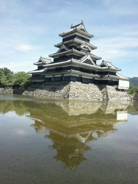 松本城ー反射して鏡になってる